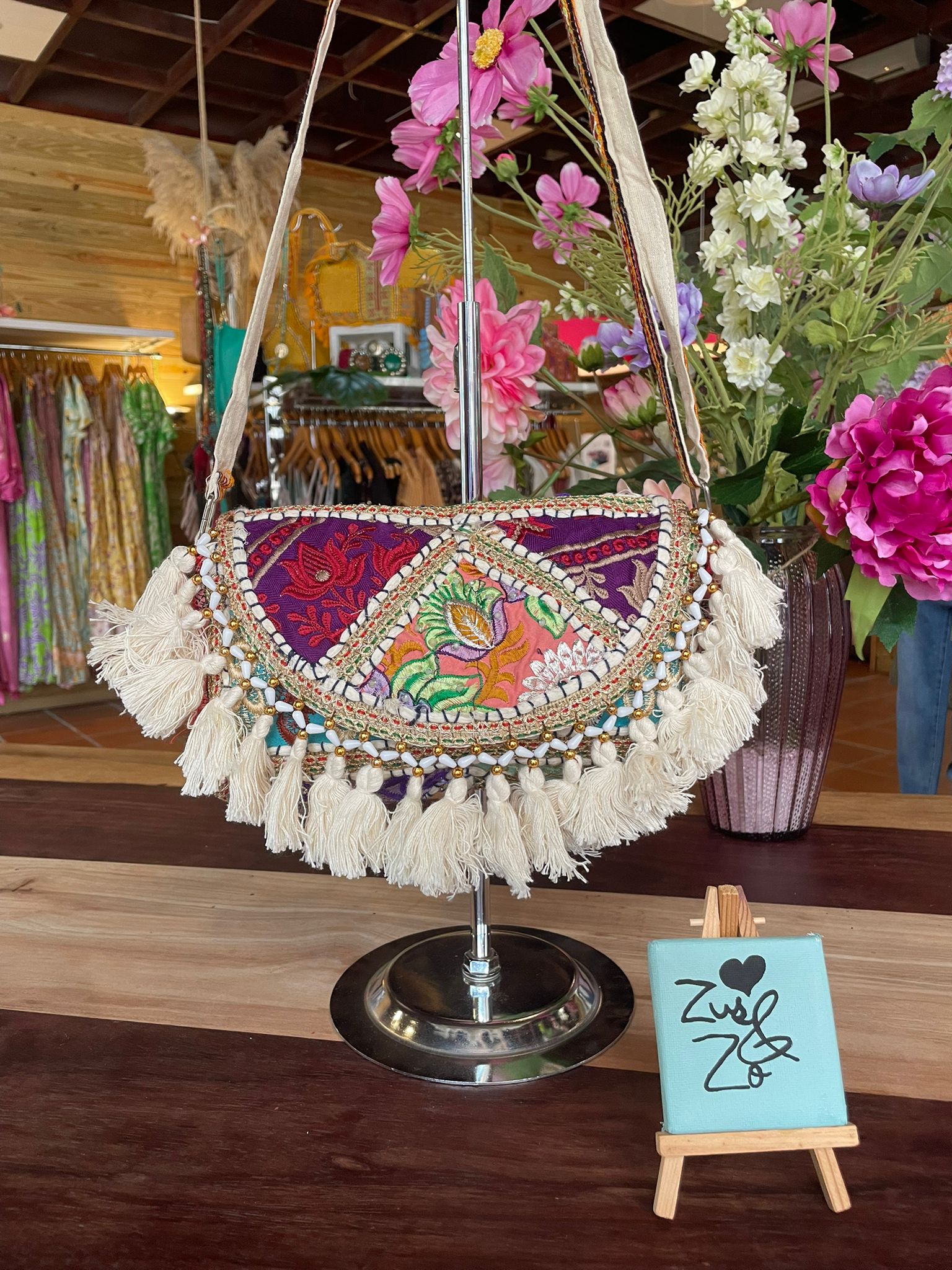 Add instant boho charm to your outfit with this richly embroidered tassel bag. Crafted with colorful patchwork panels, delicate beading and a statement fringe trim, it’s the kind of piece that turns a simple look into something special. Wear it as a shoulder or crossbody bag for festivals, holidays or everyday styling lightweight, unique, and full of character.