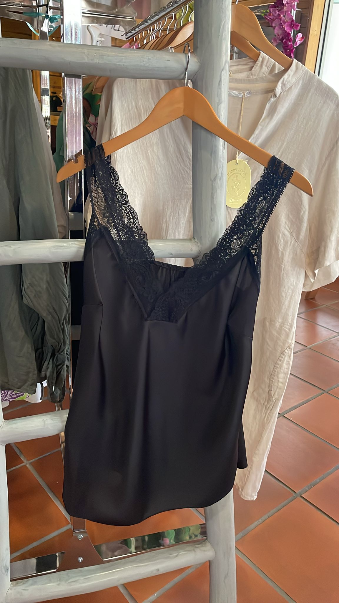A versatile wardrobe essential, this soft ribbed tank top features delicate lace trim along the neckline and armholes for a feminine finish. Designed with a comfortable, easy fit, it’s perfect for layering under blouses, knitwear, and blazers or wearing on its own with denim on warmer days.
