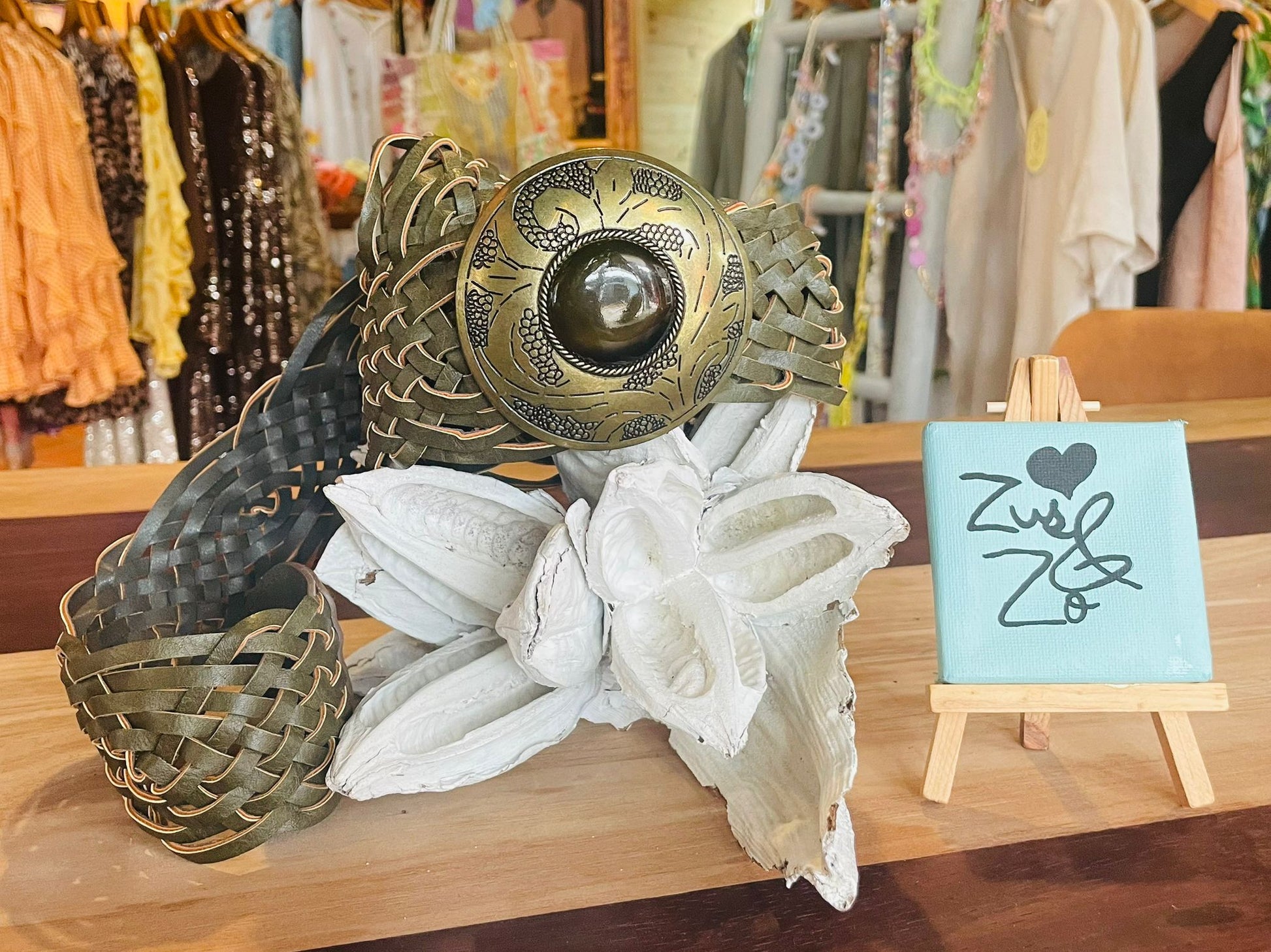 Woven Belt with Antique Buckle Olive Green